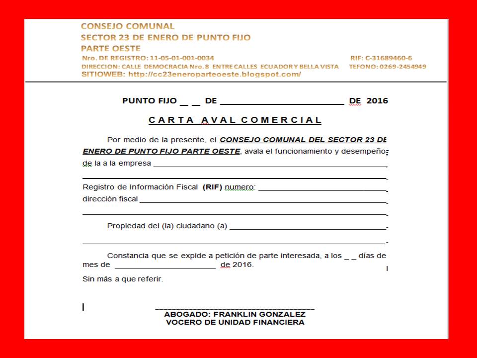 - Consejos para redactar una Carta Aval del Consejo Comunal