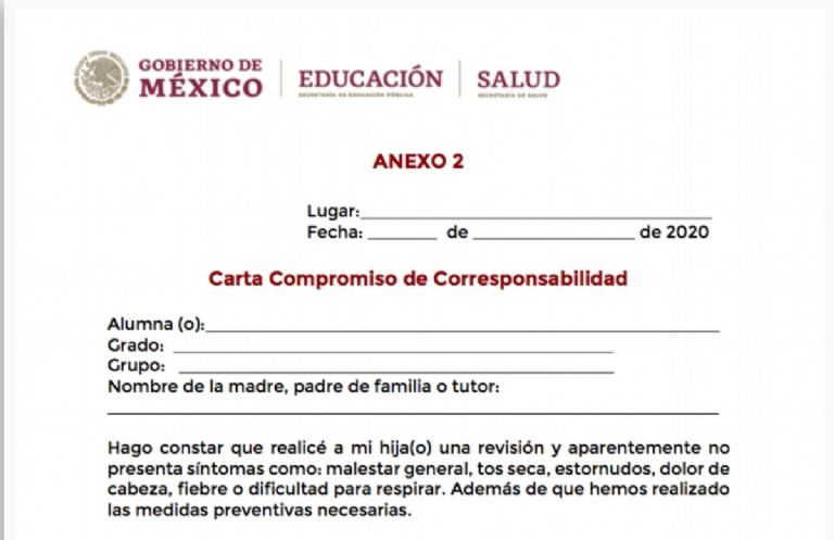 La carta debe ser firmada por el alumno, sus padres o tutores y el profesor correspondiente.
