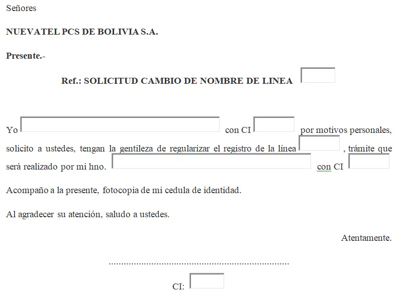 - Ejemplo 4: Carta de cambio de titular de línea telefónica por cambio de nombre