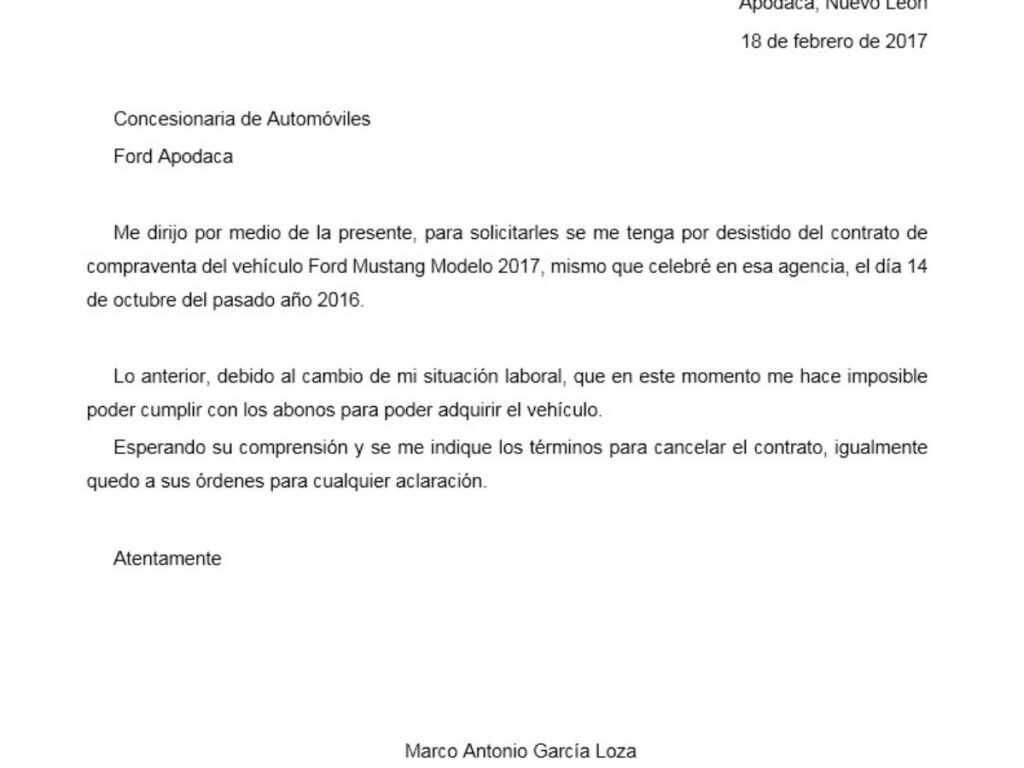 - Ejemplo 3: Carta de cancelación de póliza de auto por pérdida del interés