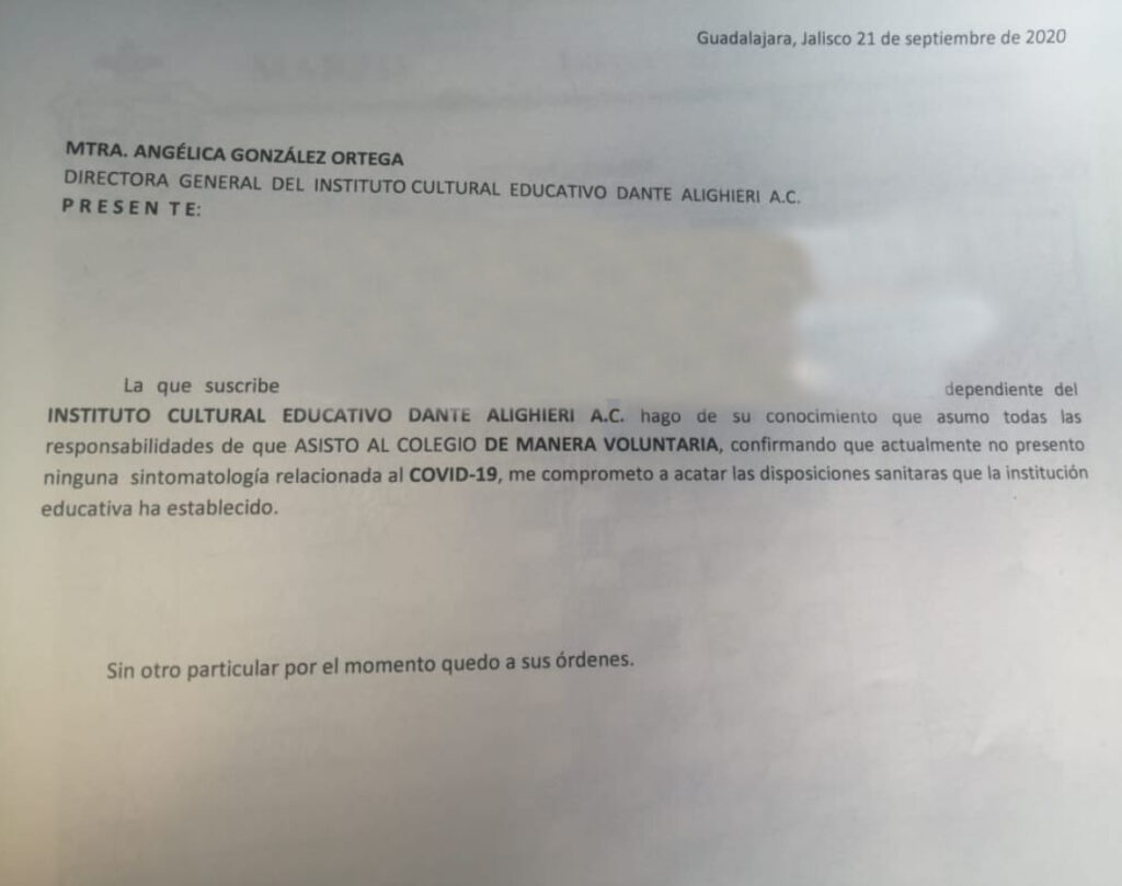 - Indica claramente que la persona que firma la carta entiende los riesgos y peligros.