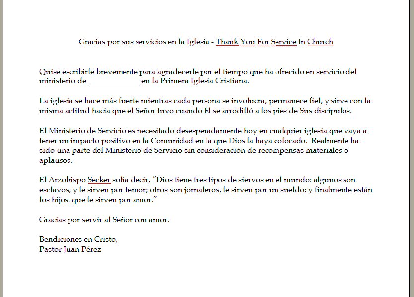 Agradezco a la iglesia por todo lo que me ha brindado y por el apoyo y la comunidad que me ha dado en los últimos años. Espero seguir en contacto con algunos de los miembros y poder contribuir a la iglesia de otras maneras en el futuro.