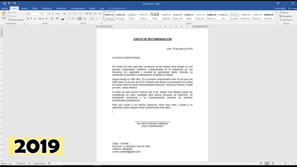 - ¿Qué información debe incluir una carta de recomendación laboral sencilla?