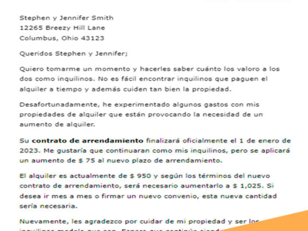 - Si es posible, proporciona una justificación para el aumento de renta.