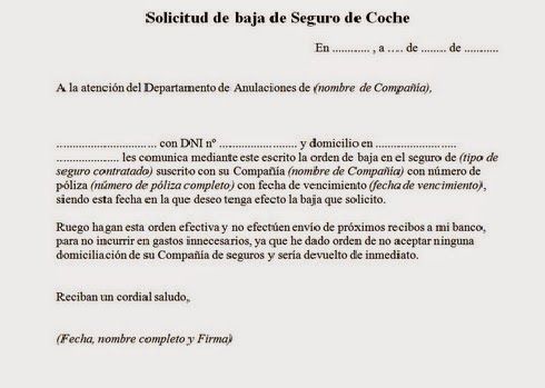 Carta para dar de baja el seguro del coche