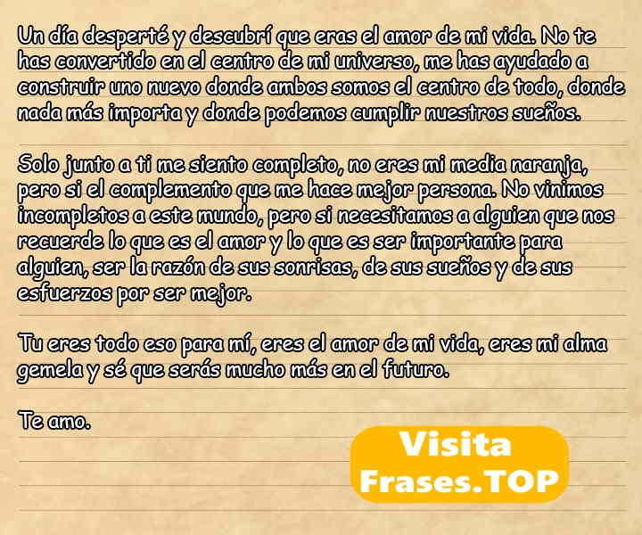 Te amo más de lo que las palabras pueden expresar. Eres mi mejor amigo y mi amor verdadero. Espero que esta carta te haga sentir lo mucho que te amo y lo agradecida que estoy de tenerte a mi lado.