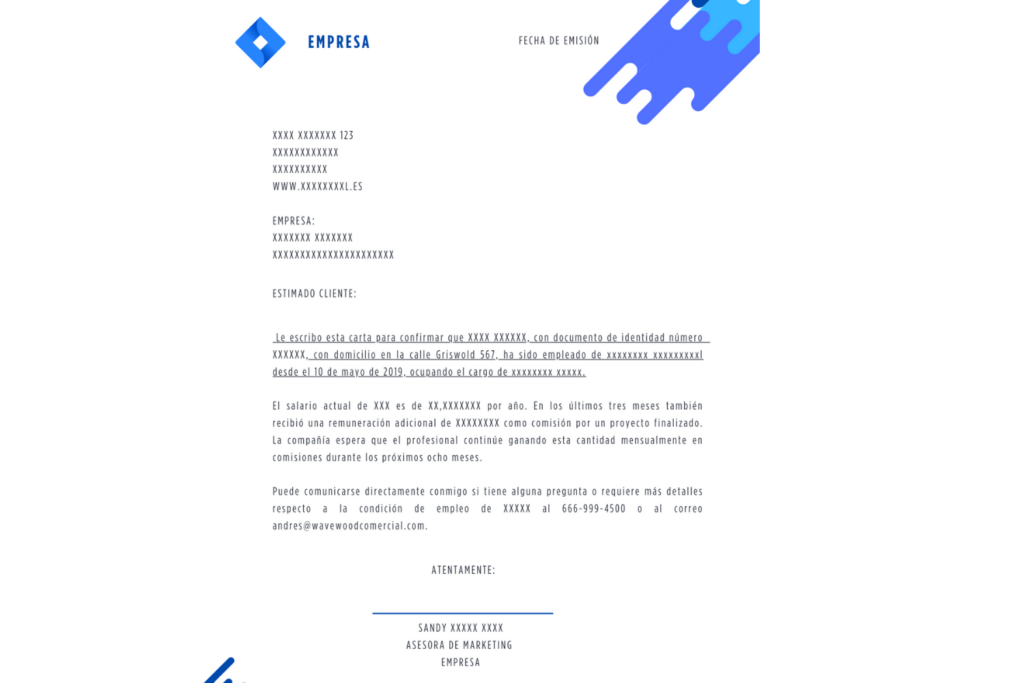 - Una descripción de tu trabajo y tus ingresos mensuales.